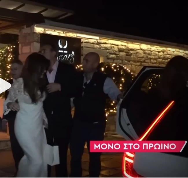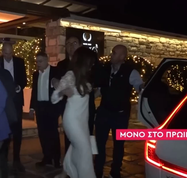 Φεύγοντας από τη δεξίωση, το ζευγάρι επιβιβάστηκε στο λευκό αμάξι του Κόκκαλη.