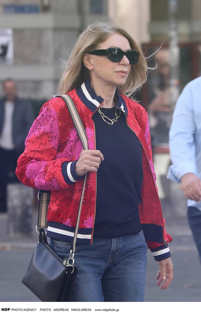 Η Έλλη Στάη έκανε μια εντυπωσιακή streetstyle πρωινή εμφάνιση χωρίς μακιγιάζ, φορώντας denim, λευκά σνίκερς, μαύρο τοπ και ιδιαίτερο τζάκετ.