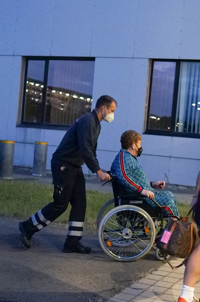 Ο 75χρονος Έλτον Τζον φαινόταν αδύναμος στις φωτογραφίες. Ήταν ντυμένος με μια από τις αθλητικές φόρμες του και φορούσε προστατευτική μάσκα όταν έφτασε στο αεροδρόμιο της Λειψίας με αναπηρικό αμαξίδιο, πριν πάει σπίτι στο σπίτι του στη Νίκαια.
