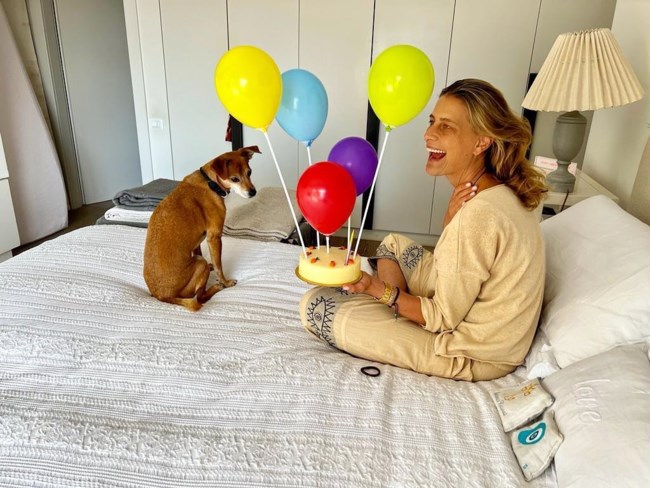 H Τατιάνα Μπλάτνικ δημοσίευσε μια φωτογραφία στην οποία είναι καθισμένη στο κρεβάτι της, με ένα κέικ καρότου και τον σκύλο της, με τον Νικόλαο να την φωτογραφίζει.