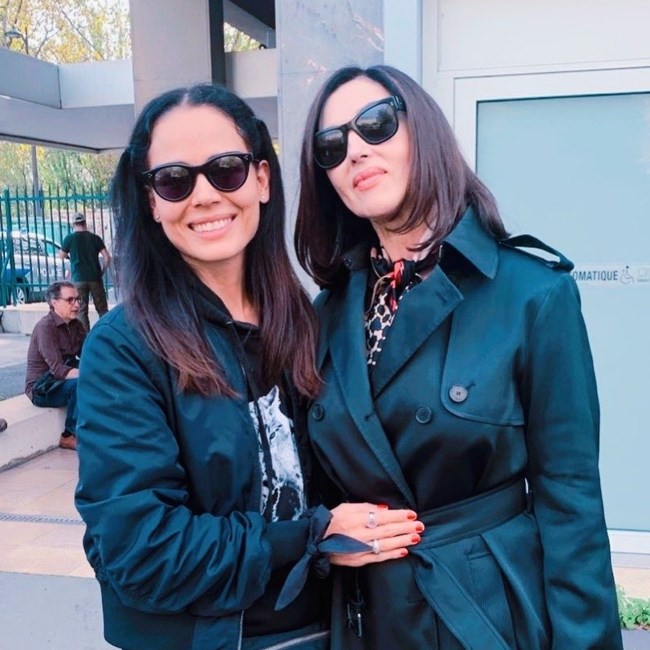 Σε μια από τις δύο φωτογραφίες οι δυο ηθοποιοί ποζάρουν μαζί με τη Μπελούτσι να φοράει μια θεϊκή καμπαρντίνα σε μπλε σκούρα απόχρωση με πολύχρωμο φουλάρι στον λαιμό που την έκανε να μοιάζει με αριστοκρατική Γαλλίδα. Ακόμα φοράει ένα ζευγάρι μαύρα γυαλιά ηλίου και είχε τα μαλλιά της απλά ισιωμένα.