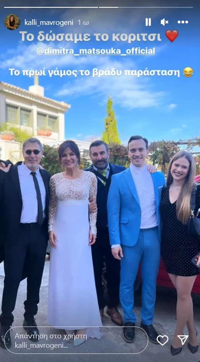 "Είμαι πολύ ευτυχισμένη, εύχομαι και στα δικά σας. Ήθελα ο γάμος μου να είναι κρυφός και το καταφέραμε, δεν ήμουν καθόλου αγχωμένη. Έτσι απλά το ήθελα και έτσι απλά έγινε. Δεν πάτησα το πόδι του συζύγου μου", είπε η Δήμητρα Ματσούκα.