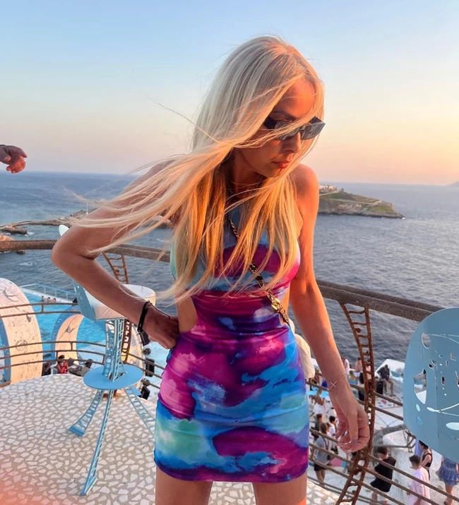 Πρώτος της σταθμός ήταν η Ίος, εκεί όπου την είδαμε να ποζάρει με αέρινο μίνι φόρεμα, ενώ ακολούθησε το ταξίδι στην Πάρο και συγκεκριμένα στη Νάουσα, όπου απολαμβάνει τις διακοπές της.