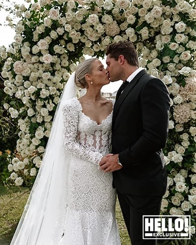 "Είμαι το πιο τυχερό κορίτσι στον κόσμο", είπε η Αμέλια για το νυφικό της. "Ειλικρινά, είναι το πιο όμορφο φόρεμα που έχω δει ποτέ. Ήταν η πιο χαρούμενη εμπειρία που εργάζομαι με τον Versace. Κάθε μέλος της ομάδας τους ήταν σαν άγγελος."