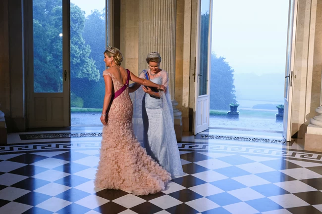 Ενώ περπατούσαν στους χώρους του παλατιού πριν το επίσημο γεύμα, οι δυο βασίλισσες είχα μια αμήχανη στιγμή μπροστά στους φωτογράφους. Όπως φαίνεται μάλλον η Μάξιμα παραλίγο να γλυστρίσει και η Ματθίλδη έσπευσε να την κρατήσει.