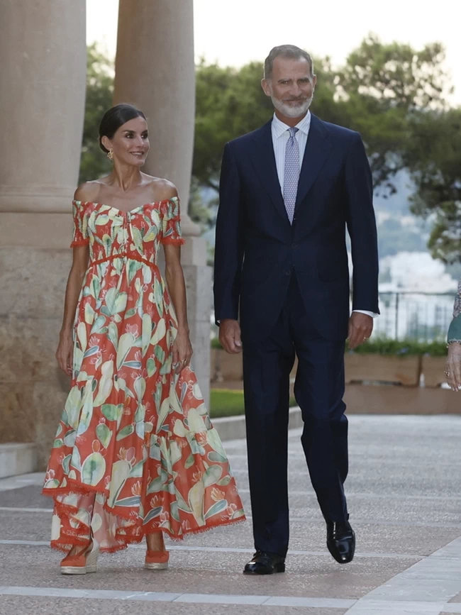 Η μαυρισμένη βασίλισσα Λετίσια εμφανίστηκε με ένα φόρεμα Charo Ruiz Ibiza που κοστίζει 439 ευρώ.