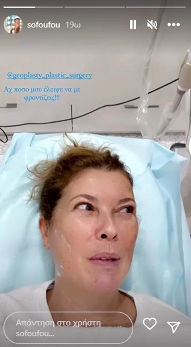 ''Ανυπομονούσα γι αυτό το ραντεβού περισσότερο από οτιδήποτε άλλο, γι' αυτό ανέβηκα και στην Αθήνα. Ο γιατρός μου θα μου κάνει μια θεραπεία η οποία είναι η πιο συγχρονη στη μη επεμβατική πλαστική χειρουργική. Θα κάνουμε μη χειρουργικό λίφτινγκ, για ανόρθωση στις παρειές'', είπε στο βίντεο που ανέβασε.