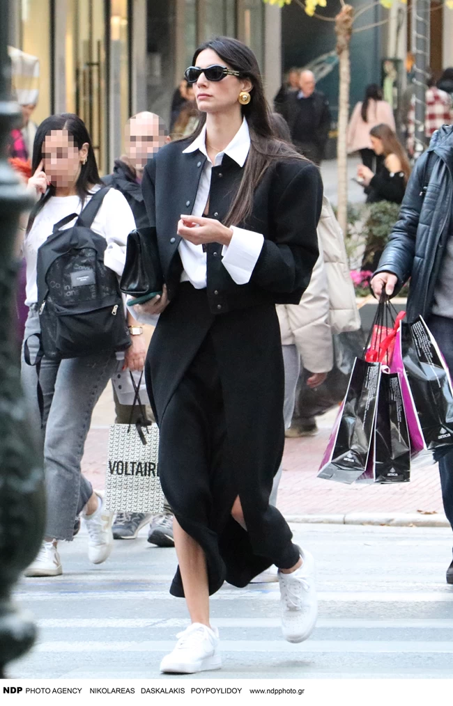 Η ζώνη στη μέση της έδωσε στιλ στο outfit.