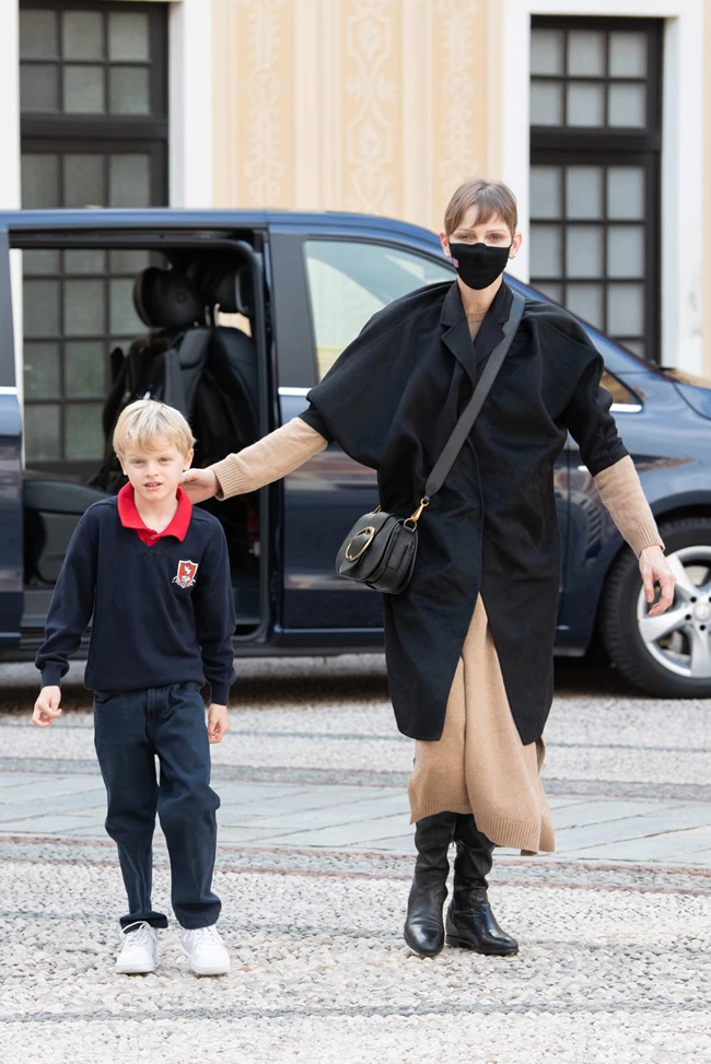 Η πριγκίπισσα του Μονακό επέλεξε ένα φανταστικό ασύμμετρο τοπ από κασμίρι σε σκούρο καφέ από το brand The Row. To συνδύασε με μάξι άνετη φούστα και ένα clutch Bottega Veneta. Ολα στην ίδια απόχρωση του καφέ.