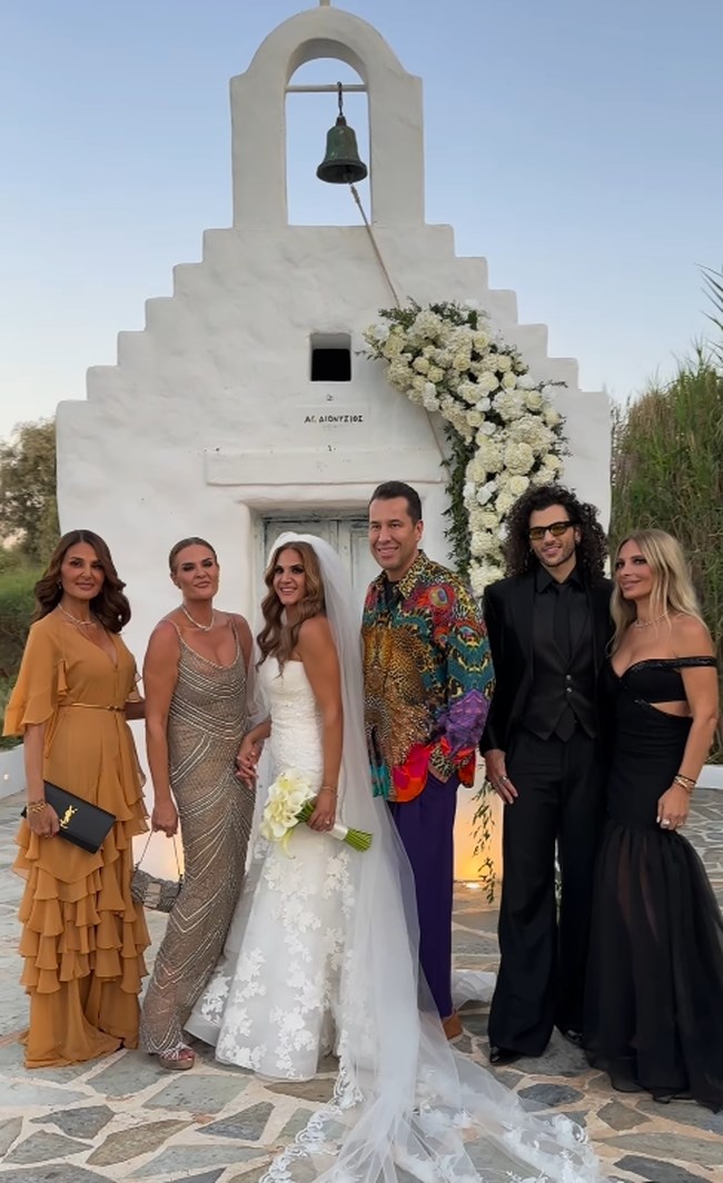 Η τελετή, που χαρακτηριζόταν από ρομαντισμό και κομψότητα, πραγματοποιήθηκε στην Αθηναϊκή Ριβιέρα, σε γραφικό εκκλησάκι δίπλα στη θάλασσα.