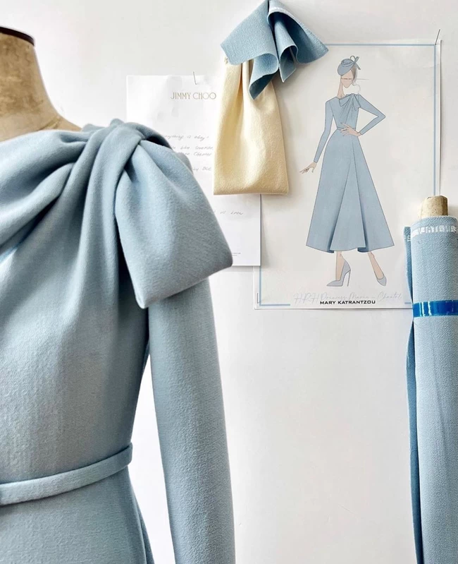 Το υπέροχο μίντι φόρεμα της Μαρί Σαντάλ ήταν μια δημιουργία της κουμπάρας της Mary Katrantzou η οποία δημοσίευσε στιγμιότυπα από την προετοιμασία του.
