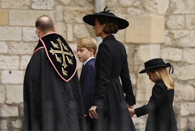 Η Κέιτ Μίντλετον και η Μέγκαν Μαρκλ περπάτησαν δίπλα δίπλα στο Αββαείο του Γουεστμίνστερ, ακολουθώντας το φέρετρο της βασίλισσας Ελισάβετ, κατά τη διάρκεια της κρατικής κηδείας της.