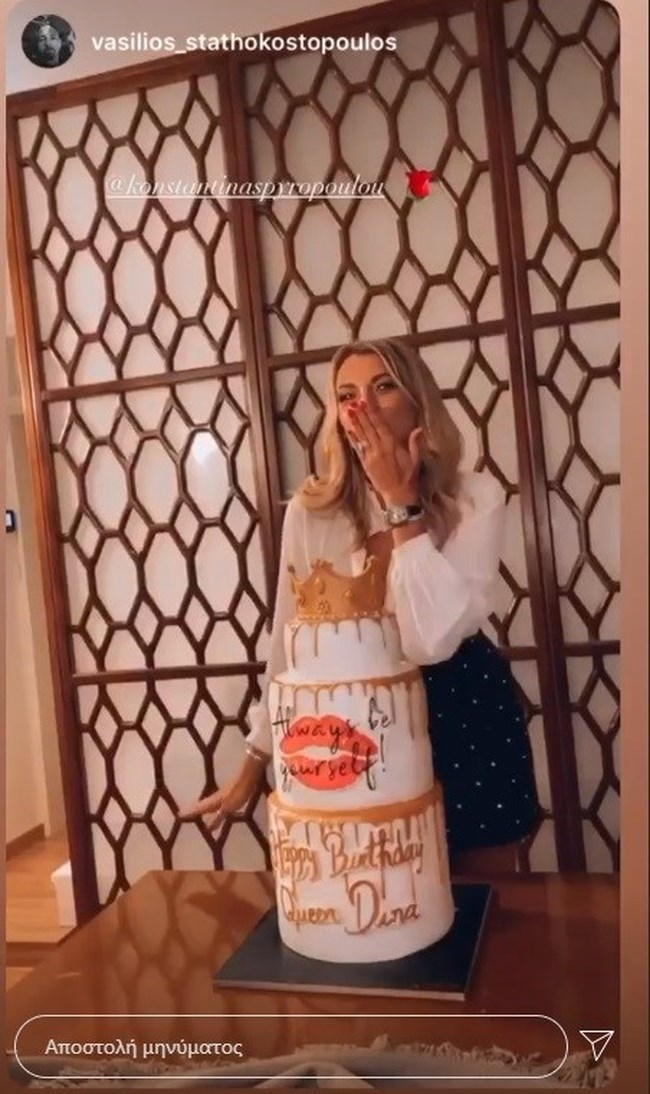 Η Κωνσταντίνα Σπυροπούλου ανέβασε και ένα βίντεο, με την ίδια να στέλνει φιλιά πίσω από την τεράστια τούρτα γενεθλίων της.