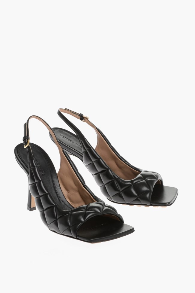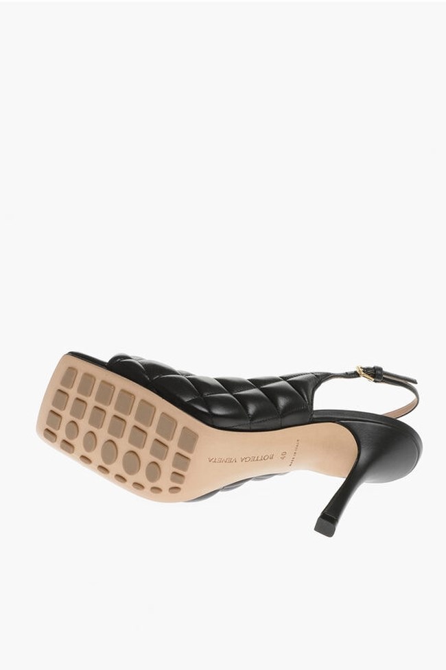 Ολοκλήρωσε το σύνολο με ψηλοτάκουνες slingback γόβες Βottega Veneta σε μαύρο χρώμα με τετράγωνη μύτη και το signature καπιτονέ σχέδιο του οίκου.