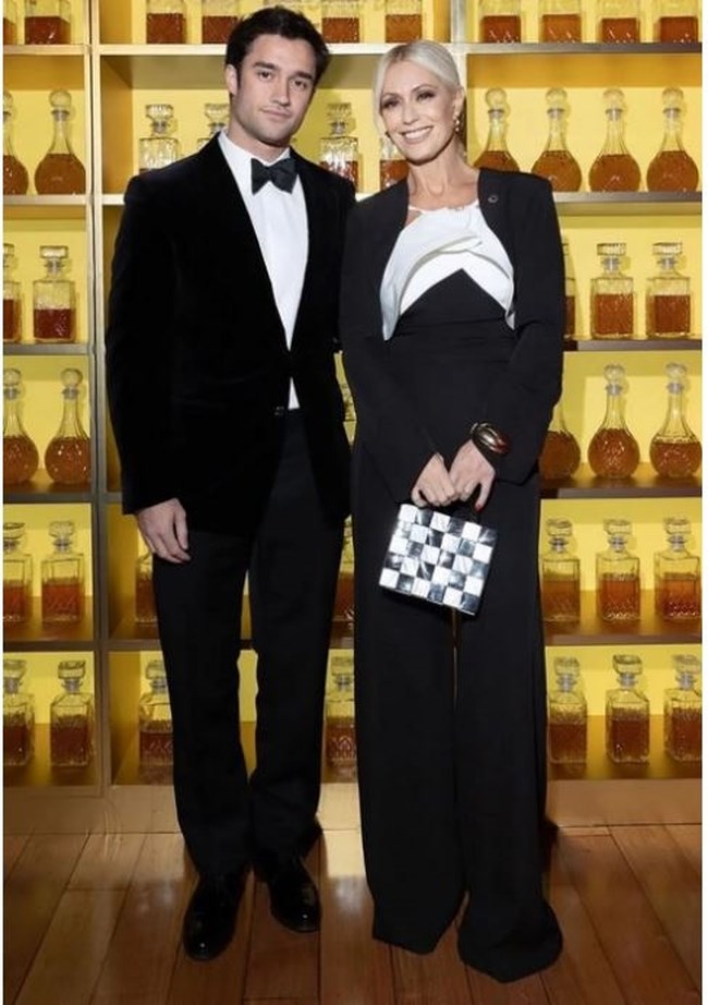 Τη συνδύασε με cropped σακάκι, χρυσά κοσμήματα και τσάντα με σχέδιο σκάκι. Ο γιος της ήταν πολύ κομψός, ντυμένος με βελούδινο μπλέιζερ και παπιγιόν.