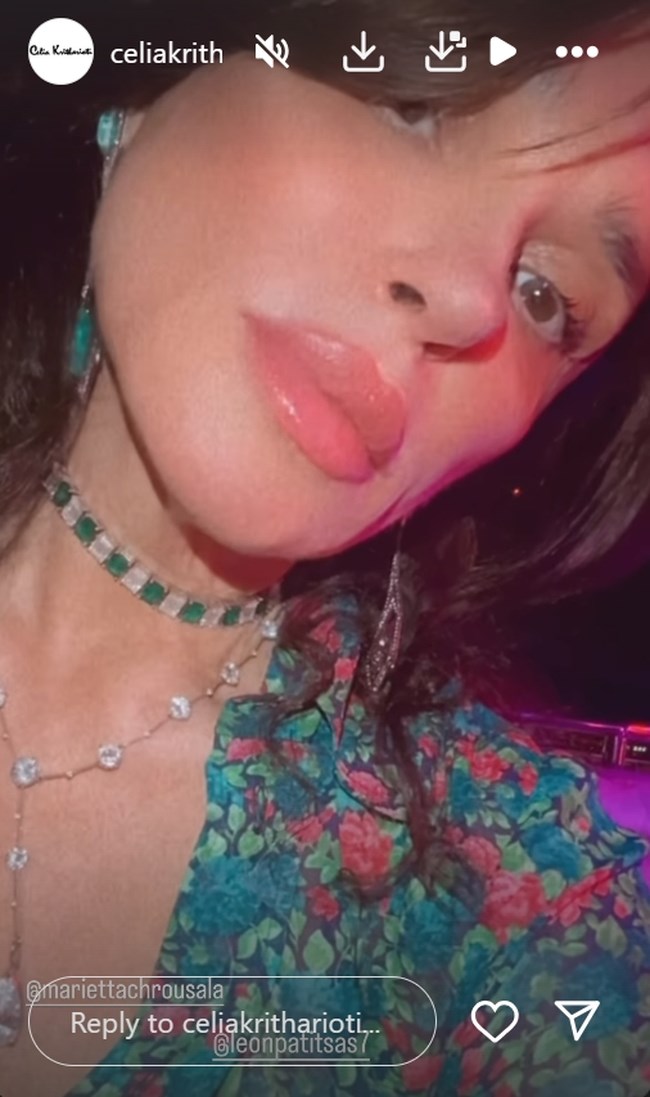 Από το πάρτι κυκλοφόρησαν ελάχιστα στιγμιότυπα. Μεταξύ άλλων είδαμε το look της Μαριέττας Χρουσαλά η οποία είχε μαζί της τη φίλη της Σίλια Κριθαριώτη.