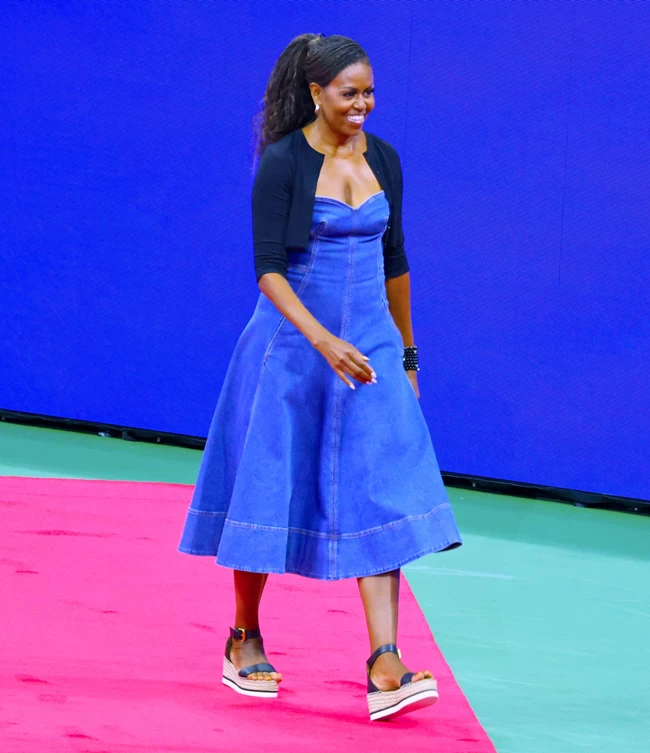 Η Μισέλ Ομπάμα εμφανίστηκε με ένα στιλάτο denim φόρεμα από τον οίκο Οscar de la Renta.
