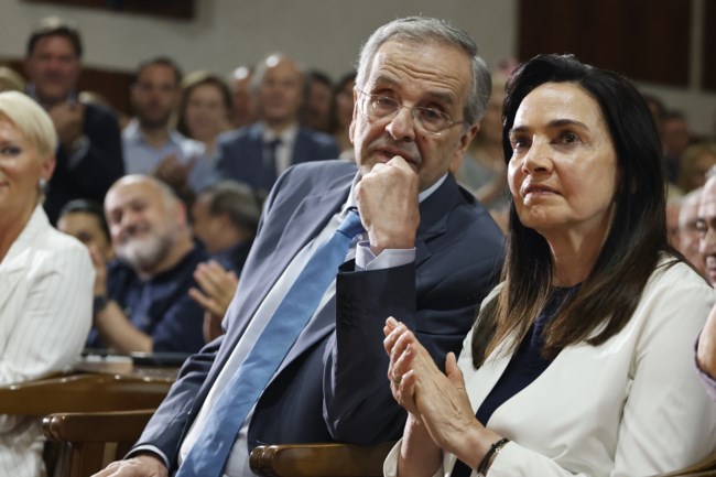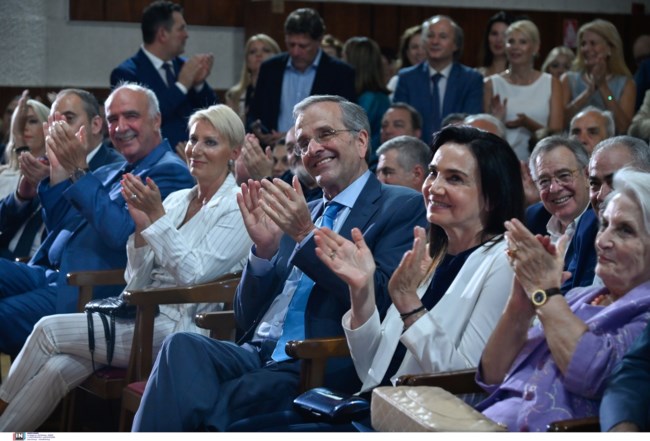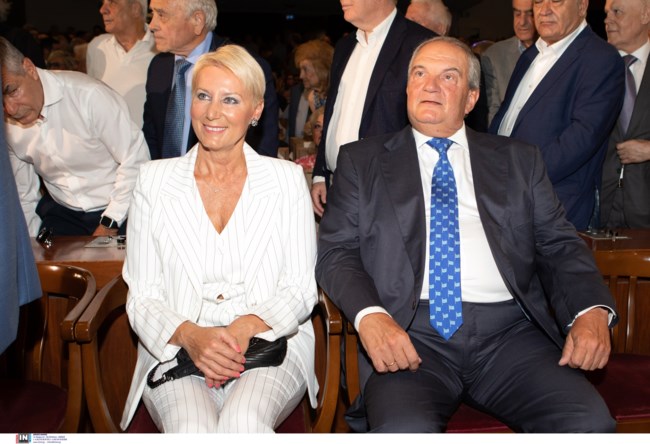 Στην ίδια εκδήλωση ήταν και η Γεωργία Σαμαρά, η σύζυγος του Αντώνη Σαμαρά με ένα σύνολο σε blue navy και λευκό.