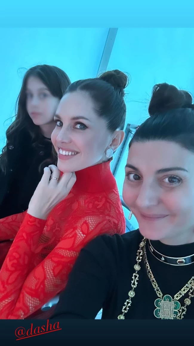 Συγκεκριμένα, φόρεσε ένα μάξι εφαρμοστό δαντελένιο φόρεμα σε κόκκινη απόχρωση. Στις φωτογραφίες την βλέπουμε να ποζάρει με μια φίλη της και την Ευγενία Νιάρχου, η οποία επέλεξε ροζ μίνι φόρεμα με παγιέτες.