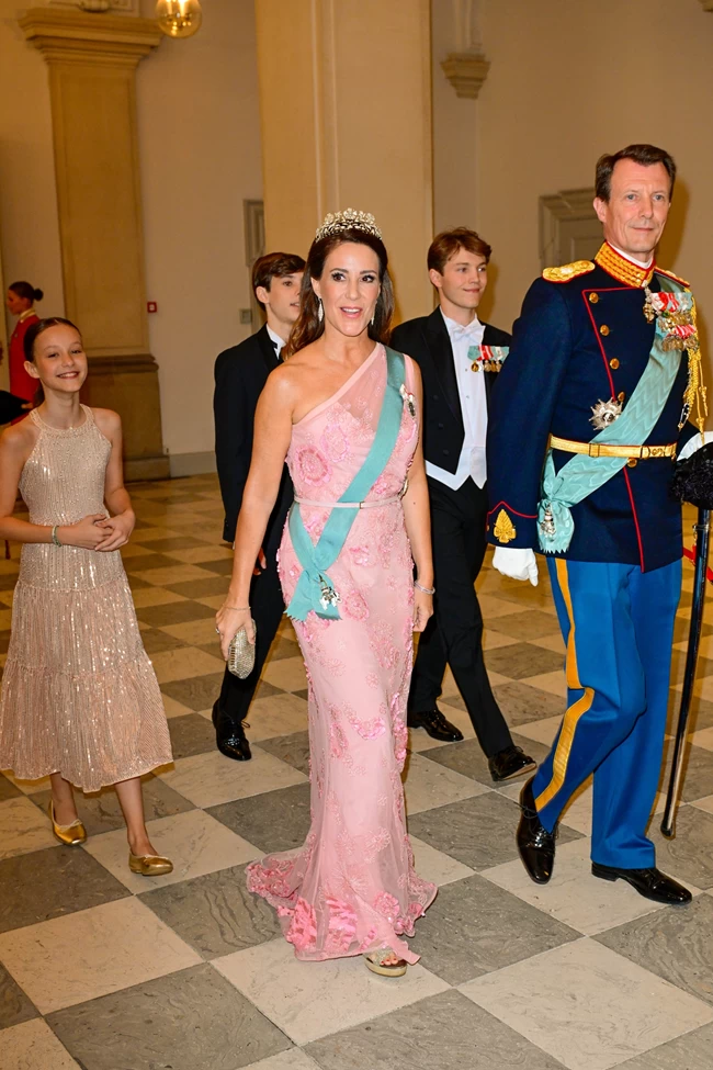 Mια από τις πιο εντυπωσιακές εμφανίσεις της βραδιάς έκανε η μητέρα του εορτάζοντα πριγκίπισσα Μαίρη με μπλε ρουά φόρεμα κεντημένο με παγιέτες.