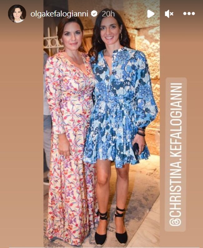 Με φλοράλ φόρεμα σε αποχρώσεις του μπλε είδαμε και την μελαχρινή αδελφή της Χριστίνα.
