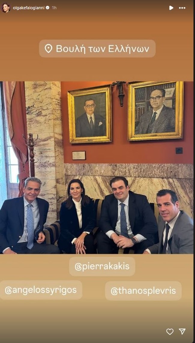 Η Όλγα Κεφαλογιάννη είναι μία δραστήρια πολιτικός και κάνει ηχηρή την παρουσία της, ως υπουργός Τουρισμού. Το πρωί της Τετάρτης, 15 Ιανουαρίου, εμφανίστηκε στη Βουλή και μοιράστηκε μία φωτογραφία με τον Κώστα Τασούλα που προτάθηκε από τον Κυριάκο Μητσοτάκη για το αξίωμα του Πρόεδρο της Δημοκρατίας. Η Όλγα Κεφαλογιάννη φωτογραφήθηκε χαμογελαστή δίπλα στον κ. Τασούλα γράφοντας για την επιλογή του πρωθυπουργού: