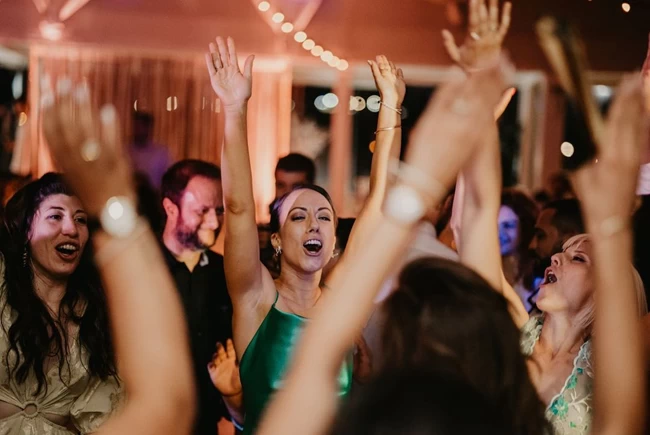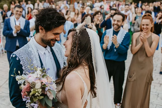 Μετά το μυστήριο, στο τέλος του οποίου οι νεόνυμφοι αντάλλαξαν ένα τρυφερό φιλί, ακολούθησε καθαρόαιμο κρητικό γλέντι με επαγγελματίες χορευτές να σέρνουν τον χορό με πεντοζάλι και συρτό.