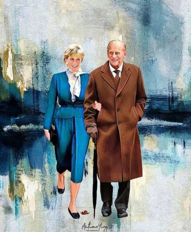 Με αφορμή τον θάνατο του πρίγκιπα Φίλιππου σε ηλικία 99 ετών, οι φαν της βασιλικής οικογένειας αποτίουν φόρο τιμής στον εκλιπόντα, θυμίζοντας ότι ήταν ο μόνος από τη βασιλική οικογένεια που είχε σταθεί στην πριγκίπισσα Νταϊάνα, όταν χώρισε με τον πρίγκιπα Κάρολο. Μάλιστα, ένας καλλιτέχνης ζωγράφισε ένα υπέροχο πορτραίτο, όπου η Νταϊάνα καλωσορίζει τον Φίλιππο, στον... παράδεισο.