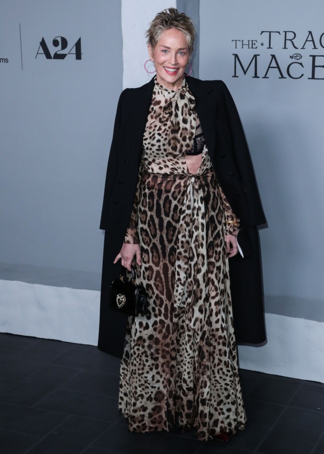 Η Σάρον Στόουν έκανε μια wild εμφάνιση με λεοπάρ φόρεμα με διαφάνειες στην πρεμιέρα της ταινίας The Tragedy Of Macbeth στο Λος Άντζελες.