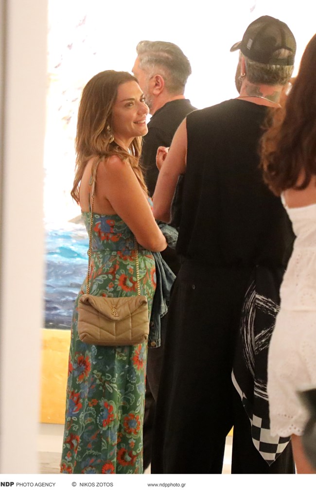 Για την εξόρμησή της, η Βάσω Λασκαράκη επέλεξε ένα πράσινο μίντι φόρεμα με εμπριμέ σχέδια που συνδύασε με ένα ζευγάρι φλατ σανδάλια και ένα denim jacket. Ο Λευτέρης Σουλτάτος επέλεξε ένα σκουρόχρωμο καλοκαιρινό σύνολο.