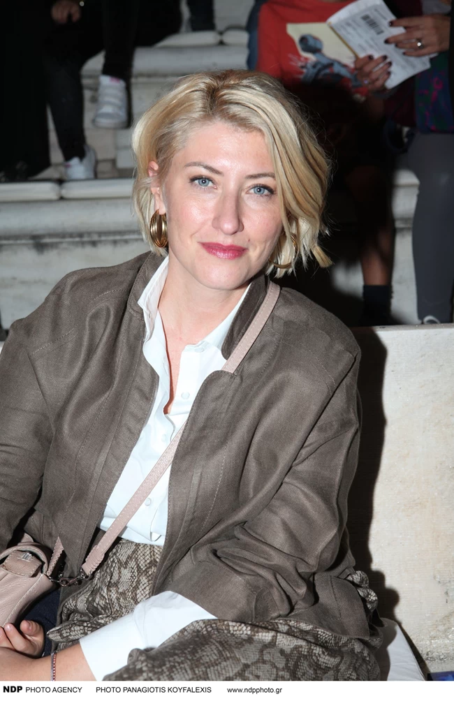 Η Σία Κοσιώνη έκανε μια εντυπωσιακή εμφάνιση σε γήινους τόνους με snakes skin παντελόνα, λευκό πουκάμισο και λεπτό πανωφόρι στο χρώμα της άμμου.