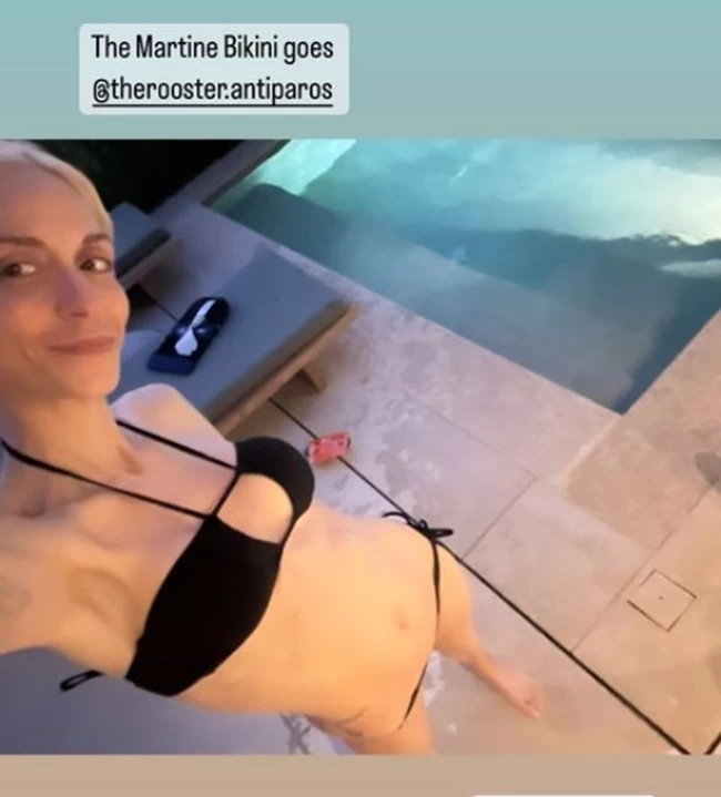 Μάλιστα, η ίδια η Καρβέλα μας έδειξε φωτογραφίες από την πισίνα του ξενοδοχείου όπου την είδαμε να ποζάρει με ένα από τα μαγιό που σχεδιάζει η ίδια.