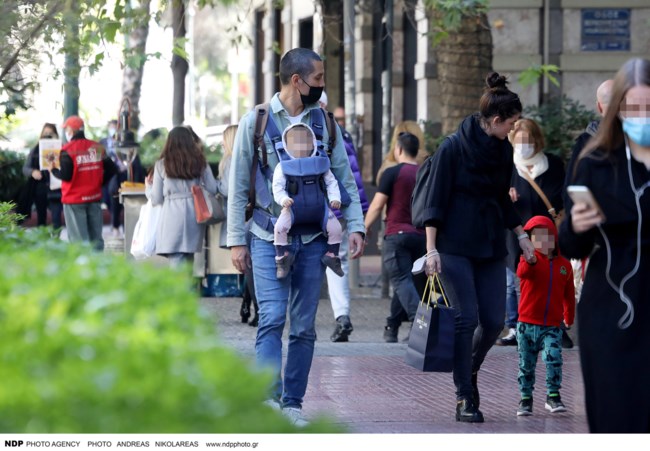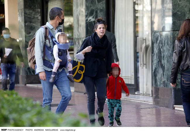 Ο Σωτήρης Κοντιζάς με τη σύζυγό του, Δέσποινα, και τα δυο από τα τρία τους παιδιά, απόλαυσαν μια χαλαρή μέρα και πήγαν για shopping στο κέντρο της Αθήνας.