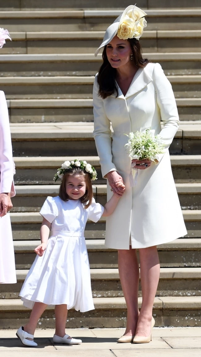Η Κέιτ ισχυρίστηκε ότι η Σάρλοτ "έκλαψε όταν δοκίμασε το φόρεμα στο σπίτι", αλλά δεν ήταν πρόθυμη να επισκεφτεί τον σχεδιαστή της Μέγκαν, ο οποίος ήταν διαθέσιμος να κάνει οποιεσδήποτε αλλαγές στα φορέματα, ενώ η Δούκισσα του Σάσεξ ήταν απασχολημένη με τη δημόσια διαμάχη με τον πατέρα της Τόμας Μαρκλ.