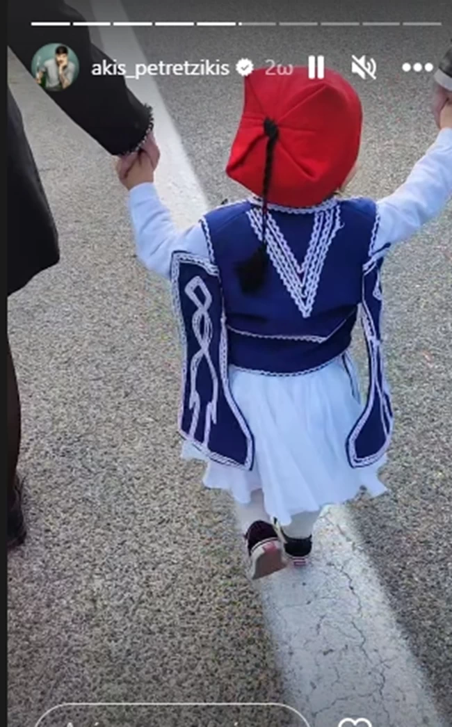 "Χρόνια πολλά σε όλους... απο τη φαμίλια! Ο τσολιάς μας και η μπεμπούλα σήμερα καταχάρηκαν! Χτες σαραντήσαμε και σήμερα είναι η πρώτη μας οικογενειακή έξοδος...", έγραψε ο Ακης στην ανάρτησή του.