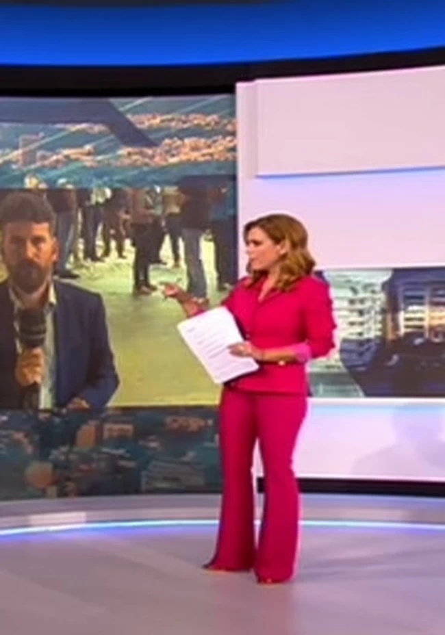 Total black εμφάνιση με κοστούμι επέλεξε η Αντριάνα Παρασκευοπούλου στην ΕΡΤ.