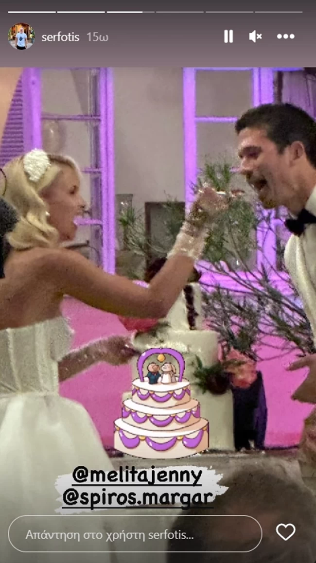 Η Τζένη Μελιτά άλλαξε τρία νυφικά κατά τη διάρκεια της πιο ευτυχισμένης μέρας της ζωής της, ενώ μετά την γαμήλια τελετή ακολούθησε πάρτι, στο οποίο τραγούδησε ο Κώστας Μπίγαλης.