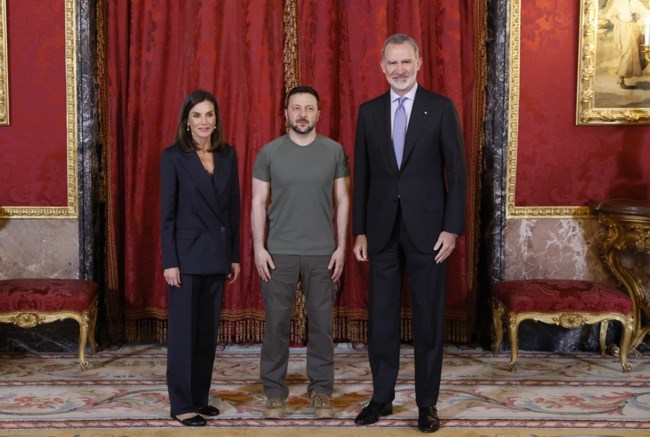 Πλέον, σε όλες τις εμφανίσεις της φοράει φλατ παπούτσια, ακόμα και μέσα στο παλάτι. Το βασιλικό ζεύγος υποδέχτηκε στο παλάτι τον πρόεδρο της Ουκρανίας Βολοντιμίρ Ζελένσκι.