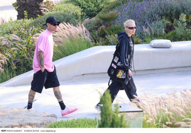 O φωτογραφικός φακός απαθανάτισε το ζευγάρι να κάνει βόλτα ντυμένο με casual outfit και να απολαμβάνει την ηρεμία του νησιού που δεν έχει ακόμη γεμίσει από κόσμο.