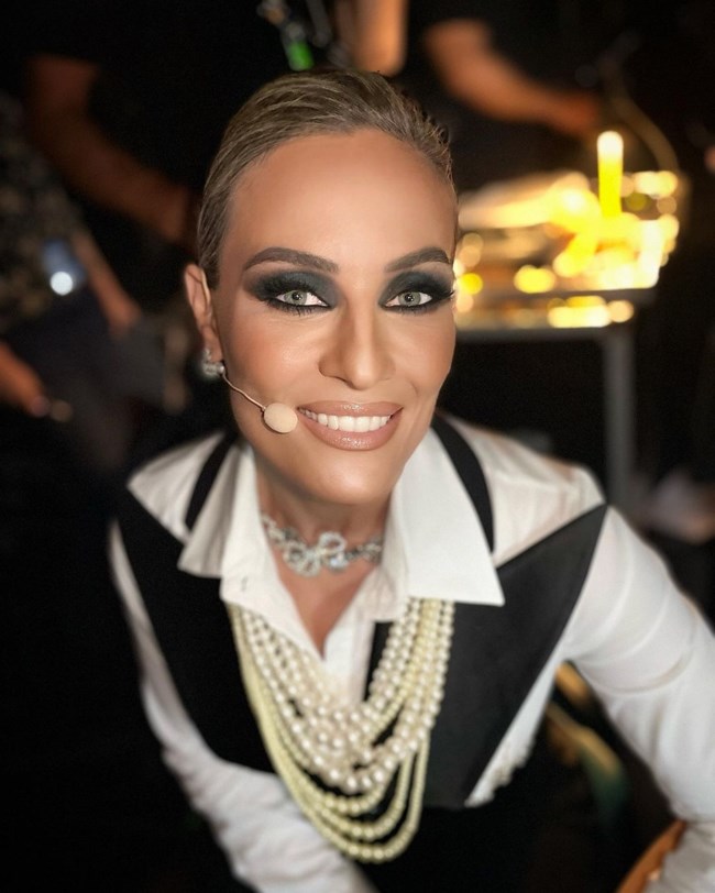 Η Μαριάννα Λάτση φόρεσε ένα ελαστικό jumsuit με διαφάνειες και στρας που είχε τούλινα μανίκια.