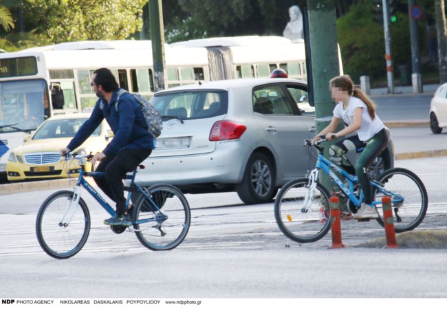 Αυτή τη φορά ο φωτογραφικός φακός τον εντόπισε σε μια ποδηλατάδα με την κόρη του στο κέντρο της Αθήνας.