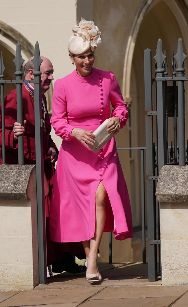 Ένα εντυπωσιακό φόρεμα σε έντονο ροζ φόρεσε η Ζάρα Τίνταλ, ανιψιά του βασιλιά Κάρολου και κόρη της πριγκίπισσας Άννας. Το φόρεμά της ήταν μακρυμάνικο με ντυμένα κουμπιά στα μανίκια και κατά μήκος του φορέματος που κατέληγαν σε ένα μεγάλο σκίσιμο.
