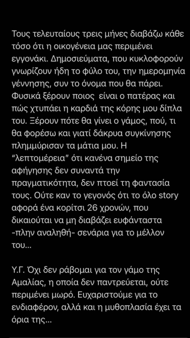Στο κείμενο που δημοσίευσε έγραψε ότι όλα όσα αναφέρουν τα δημοσιεύματα ανήκουν στη σφαίρα της φαντασίας.