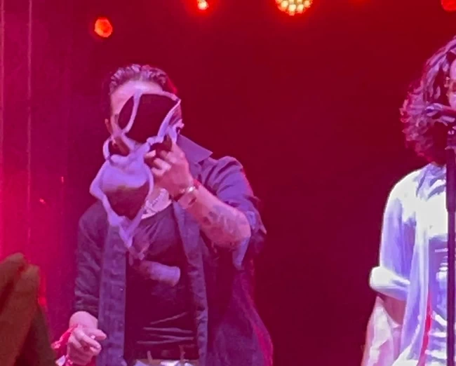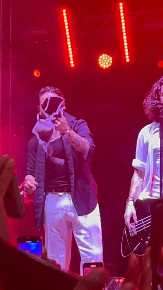 Στη συνέχεια, ο τραγουδιστής του αγαπημένου συγκροτήματος "Μέλισσες” άφησε το σουτιέν στην άκρη και συνέχισε το πρόγραμμά του, στη συναυλία που διοργανώθηκε στο γήπεδο Αλκαζάρ, στη Λάρισα.