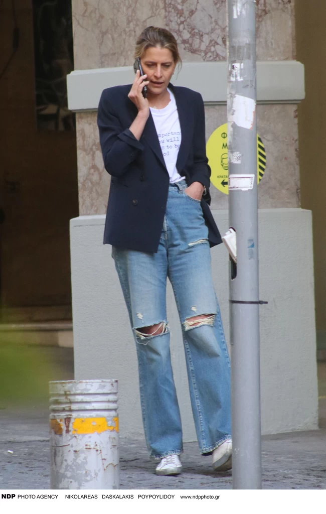 Ο συνδυασμός λευκό πουκάμισο ή τοπ με τζιν είναι διαχρονικός και η Τατιάνα Μπλάτνικ τον επιλέγει συχνά στις πρωινές εμφανίσεις της.