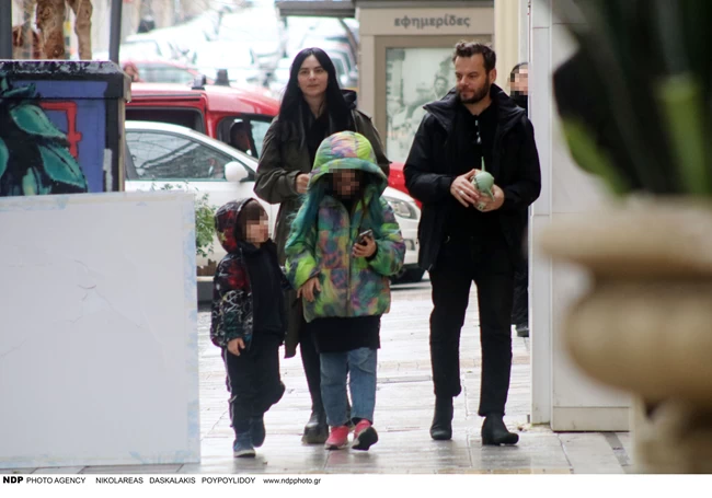 Σε βόλτα τους στο κέντρο της Αθήνας εντόπισε ο φωτογραφικός φακός τη Ζενεβιέβ Μαζαρί με τον σύζυγό της Βασίλη Καρύδη και τα παιδιά τους.
