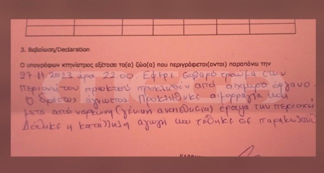 "Είχε αιμορραγία, ήταν ημιλιπόθυμο. Τον πήρα αγκαλιά, τον έβαλα στο αυτοκίνητο. Έφυγα εκτάκτως για την κτηνίατρο μου. Όταν αντίκρισε και η γιατρός μου το περιστατικό. Έμεινε άναυδη", δήλωσε ο ιδιοκτήτης του Όλιβερ.