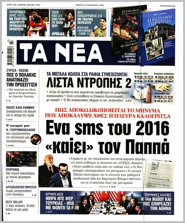Το SMS στάλθηκε από το κινητό τηλέφωνο του κ. Παππά στον κ. Καλογρίτσα και αναφέρει: