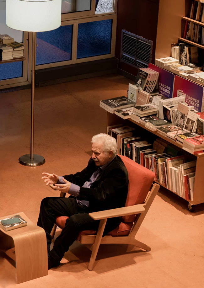 Είχα να τον συναντήσω αρκετά χρόνια από κοντά και ήταν σαν να μην πέρασε ούτε μια μέρα. Του το ανέφερα σε αυτή την εισαγωγική μας συζήτηση. "Δόξα τω Θεώ είμαι απολύτως υγιής, το μόνο μου πρόβλημα είναι η περιορισμένη μου όραση μου απάντησε". Με την μνήμη του σε εξαιρετική κατάσταση αρχίσαμε να βουτάμε στις σελίδες του βιβλίου, μέσα από τις οποίες ξετυλίγεται η αυτοβιογραφία του, κομμάτια της ζωής μυθικών προσώπων όπως ο Μάνος Χατζιδάκις, ο Μίκης Θεοδωράκης, η Μελίνα Μερκούρη, ο Κωνσταντίνος Μητσοτάκης και πολλοί άλλοι αλλά και η καταγραφή της εξέγερσης του Πολυτεχνείου.