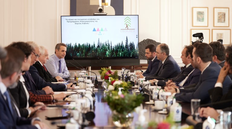 Ο πρωθυπουργός Κυριάκος Μητσοτάκης προήδρευσε σήμερα σε σύσκεψη στο Μέγαρο Μαξίμου, στην οποία έγινε η επίσημη παράδοση της μελέτης στρατηγικού σχεδιασμού (masterplan) για την ανασυγκρότηση της βόρειας Εύβοιας και η συμβολική εκκίνηση της φάσης της υλοποίησης όλων των έργων και των δράσεων του προγράμματος.